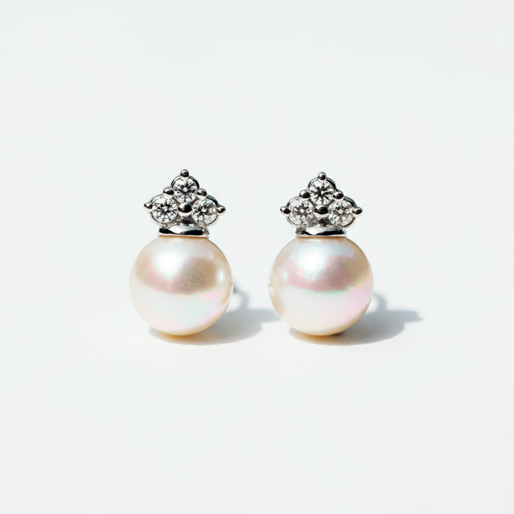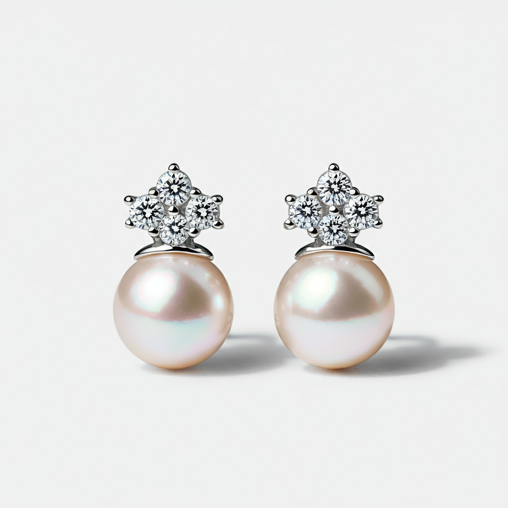 Natural white pearl and diamond earrings