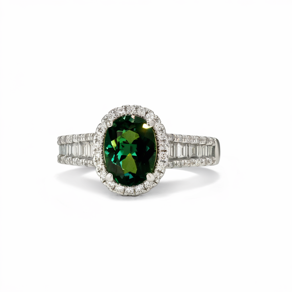Oval green tourmaline diamonds ring